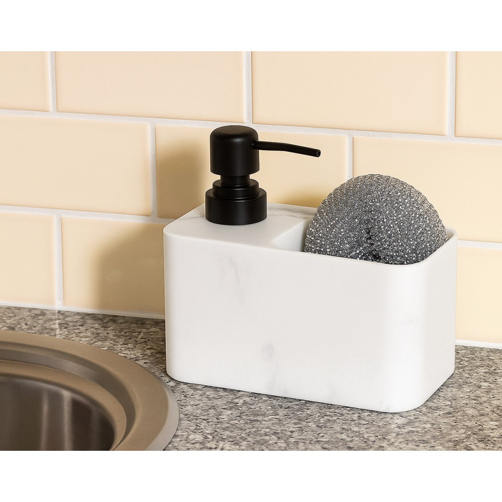 Nie musisz trzymać osobno płynu i gąbek, które zajmują dużo miejsca. Dzięki dozownikowi będziesz miał wszystko pod ręką - w jednym miejscu. Nowoczesny design dozownika sprawia, że pełni również funkcję ozdobną pięknie prezentując się na Twoim blacie kuchennym.