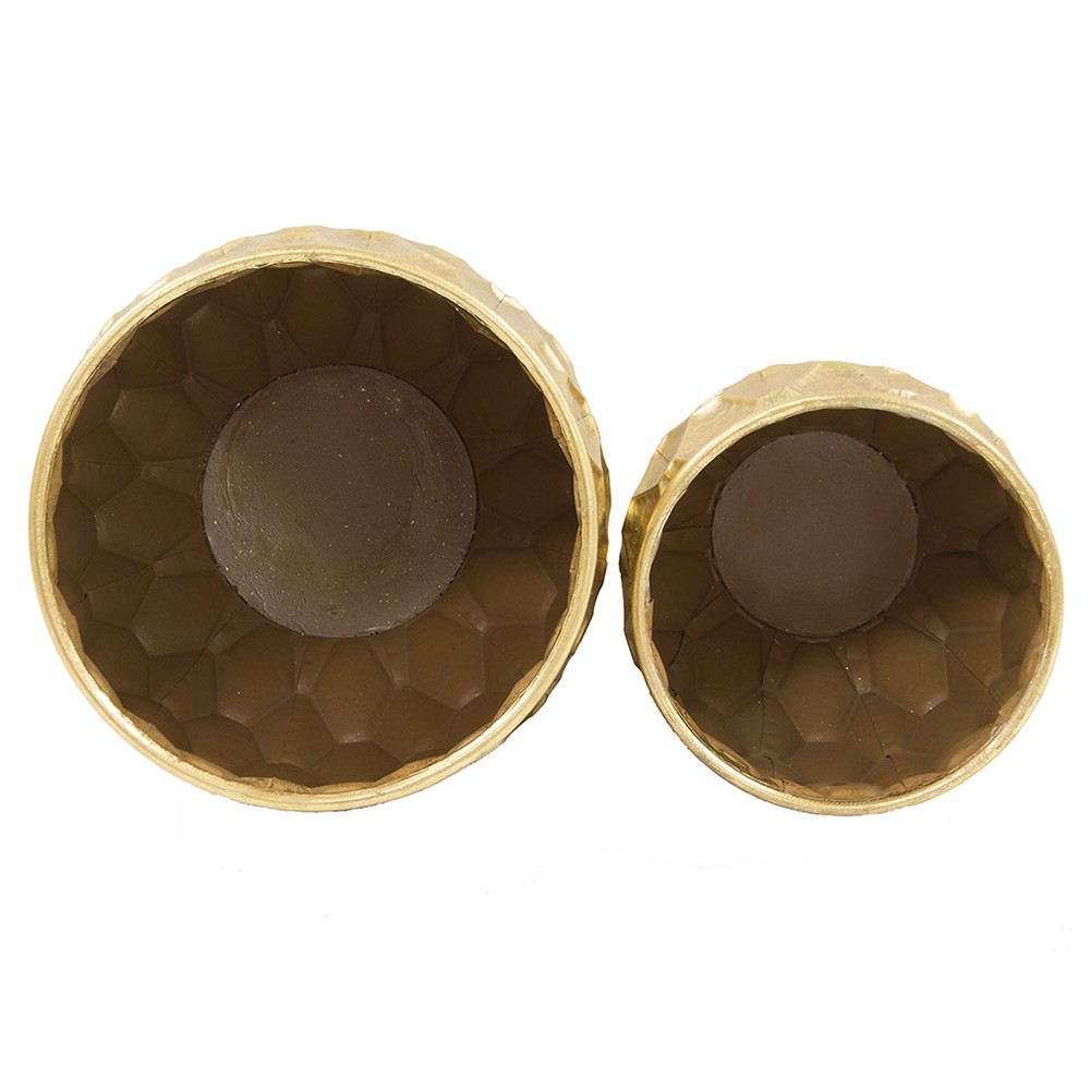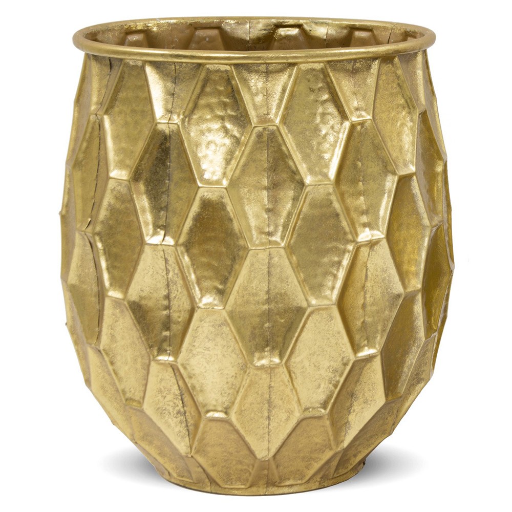 Niespotykana doniczka / osłonka (1szt.) okrągła wykonana z metalu w kolorze złotym. Jej nieprzeciętny design sprawi, że będzie pięknie się prezentowała w Twoim domu a dzięki swojemu zdobieniu będzie bardzo estetycznym dodatkiem. Nie posiada otworu do odpływu wody.
