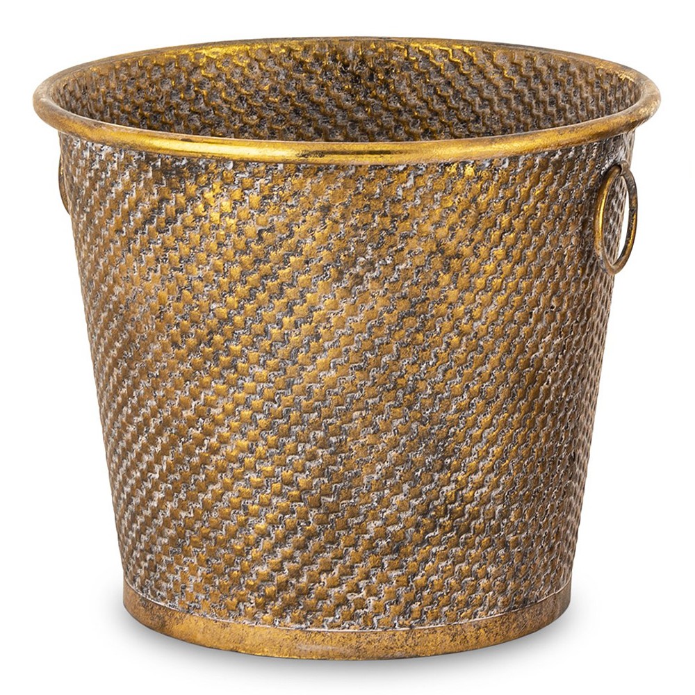 Niespotykana doniczka / osłonka (1szt.) okrągła wykonana z metalu w kolorze brązowo-złotym. Jej nieprzeciętny design sprawi, że będzie pięknie się prezentowała w Twoim domu a dzięki swojemu zdobieniu, będzie bardzo estetycznym dodatkiem. Jej unikalna, geometryczna struktura nadają stylowego charakteru i sprawiają, że doskonale prezentuje się w nowoczesnych wnętrzach lub w ogrodzie zimowym. Doskonała do eksponowania kwiatów i kompozycji roślinnych. Nie posiada otworu do odpływu wody. Idealna dla miłośników niespotykanych dekoracji.