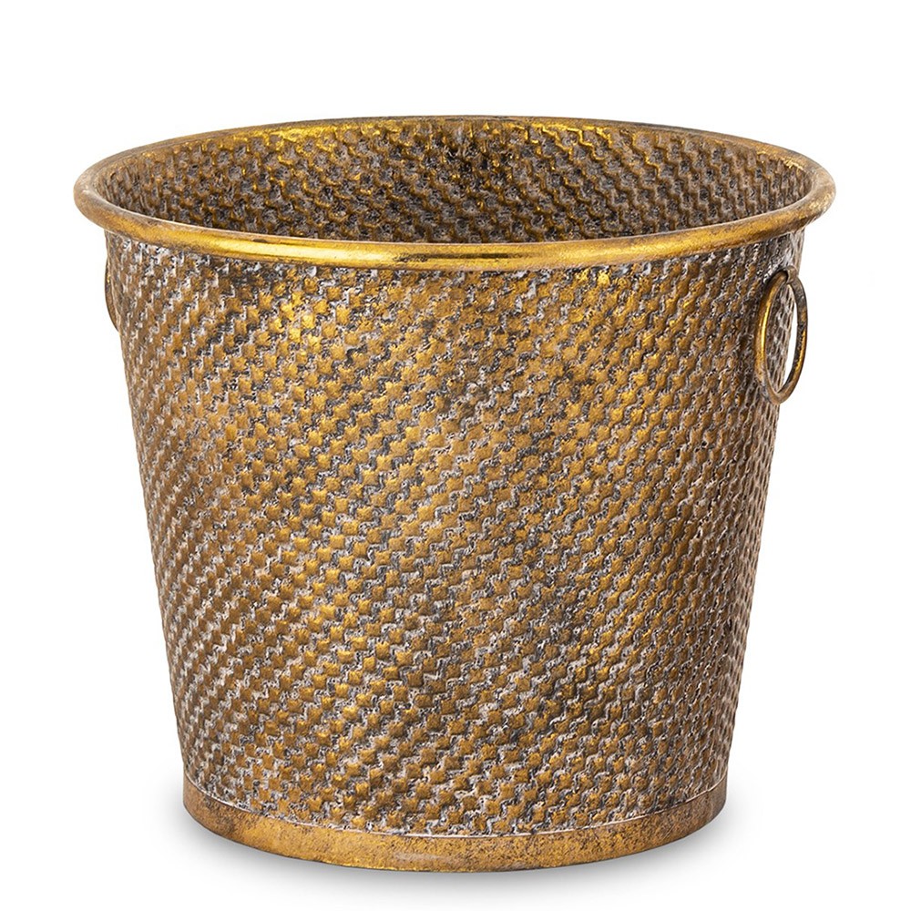 Niespotykana doniczka / osłonka (1szt.) okrągła wykonana z metalu w kolorze brązowo-złotym. Jej nieprzeciętny design sprawi, że będzie pięknie się prezentowała w Twoim domu a dzięki swojemu zdobieniu, będzie bardzo estetycznym dodatkiem. Jej unikalna, geometryczna struktura nadają stylowego charakteru i sprawiają, że doskonale prezentuje się w nowoczesnych wnętrzach lub w ogrodzie zimowym. Doskonała do eksponowania kwiatów i kompozycji roślinnych. Nie posiada otworu do odpływu wody. Idealna dla miłośników niespotykanych dekoracji.