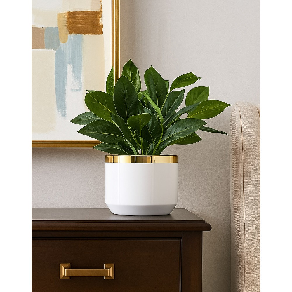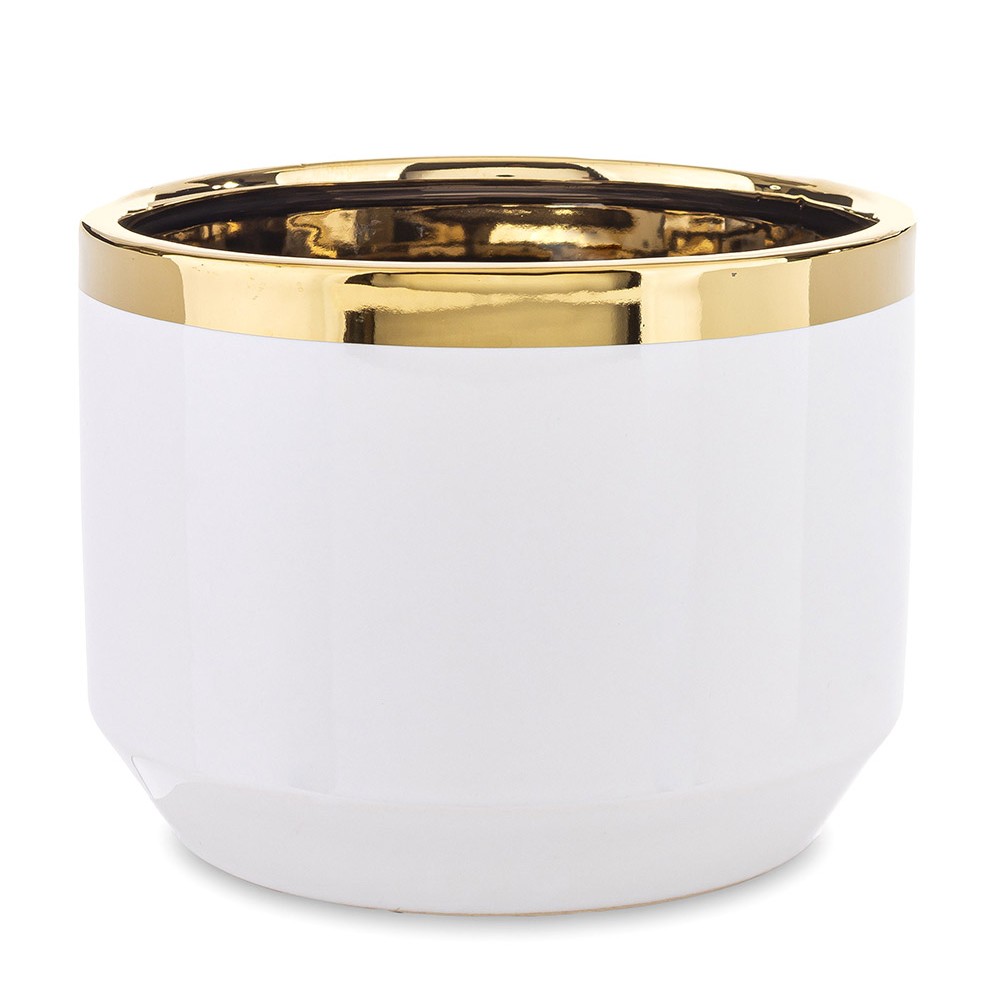 Inspirując się stylem glamour, osłonka została ozdobiona delikatnym złotym paskiem, który nadaje jej wyjątkowego charakteru i ciepłej atmosfery. Dodaj wnętrzu charakteru dzięki tej efektownej osłonce w nowoczesnym stylu! Zachwyca subtelnym, połyskującym wykończeniem. Idealna jako dekoracja, świetnie prezentuje się solo lub z ulubioną rośliną.