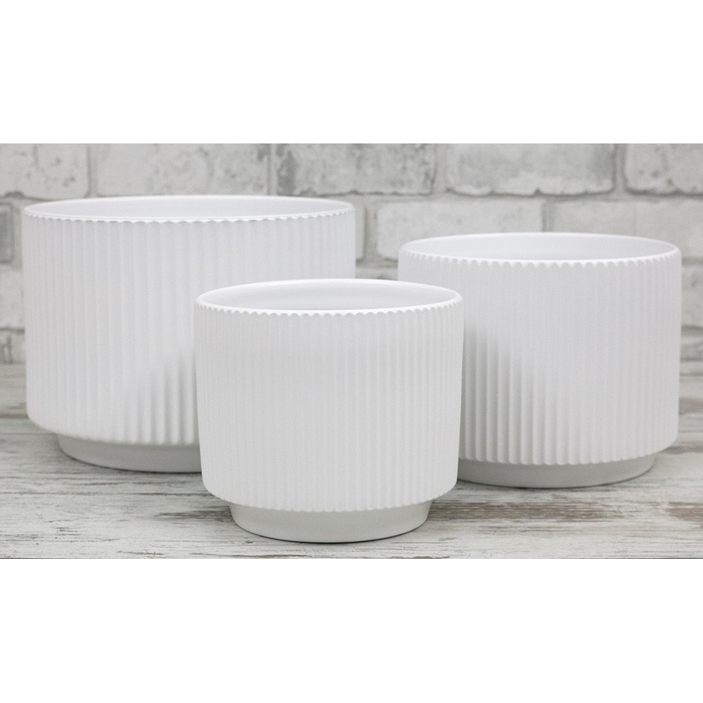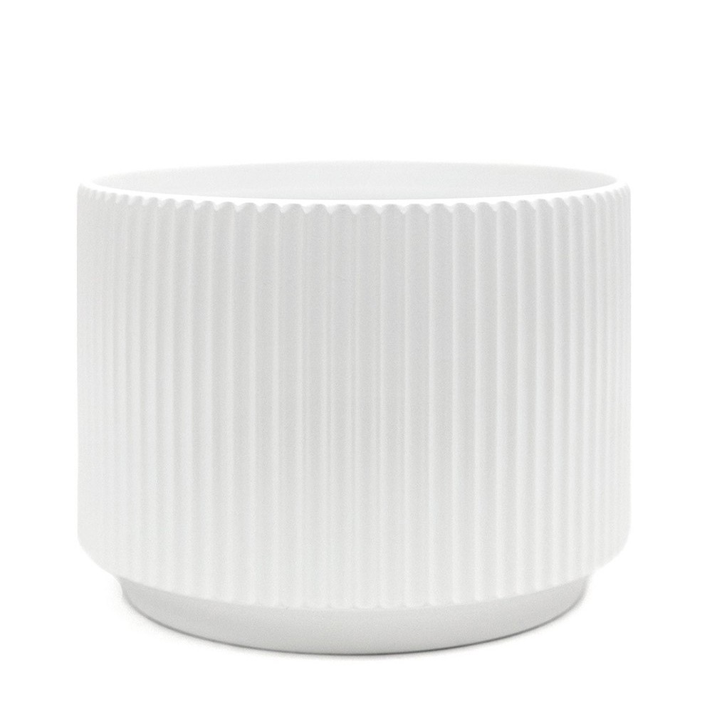 Elegancka biała doniczka ceramiczna prążkowana to idealne połączenie prostoty i nowoczesnego designu. Wykonana z wysokiej jakości ceramiki, zachwyca subtelnym, pionowym żłobieniem, które nadaje jej wyjątkowego charakteru. Doniczka posiada otwór odpływowy, który zapewnia odpowiednią cyrkulację wody i chroni korzenie roślin przed przelaniem.
