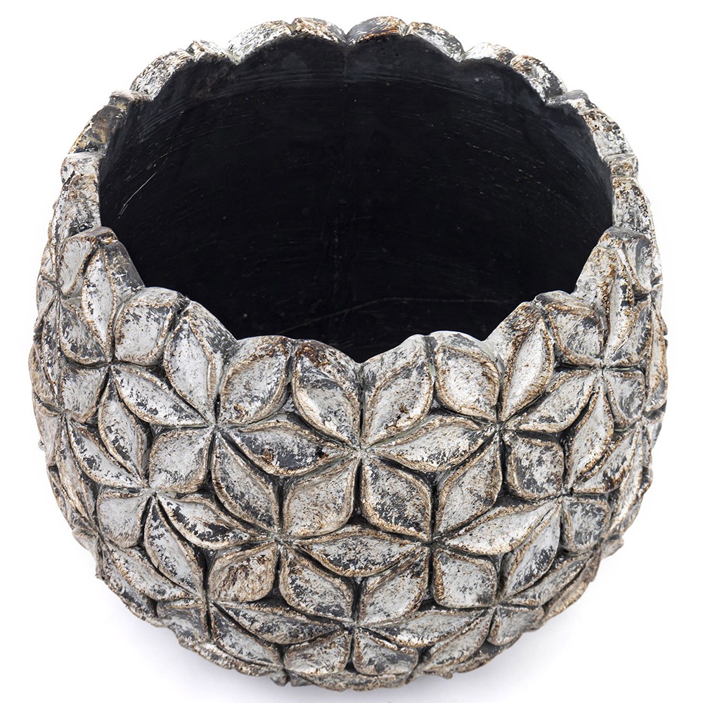 Wprowadź do swojego wnętrza odrobinę eleganckiej, surowej estetyki dzięki wyjątkowej osłonce cementowej o wymiarach 12 × 15 cm. Jej powierzchnia zdobiona jest reliefowym motywem przypominającym geometryczny układ kwiatowych płatków, co nadaje jej niepowtarzalny, artystyczny charakter. Subtelne postarzenia i przetarcia podkreślają loftowy oraz industrialny styl, a jednocześnie doskonale komponują się także z aranżacjami boho czy klasycznymi.