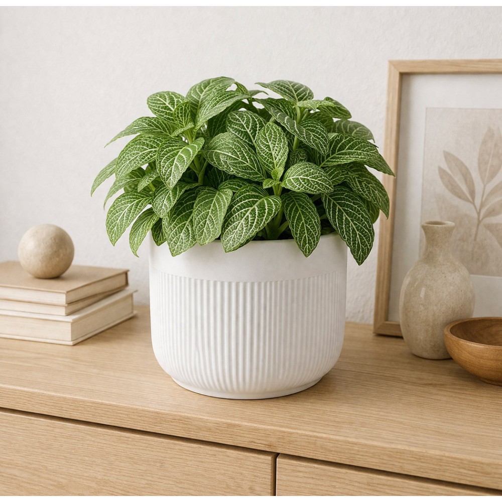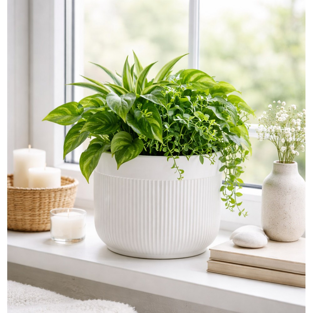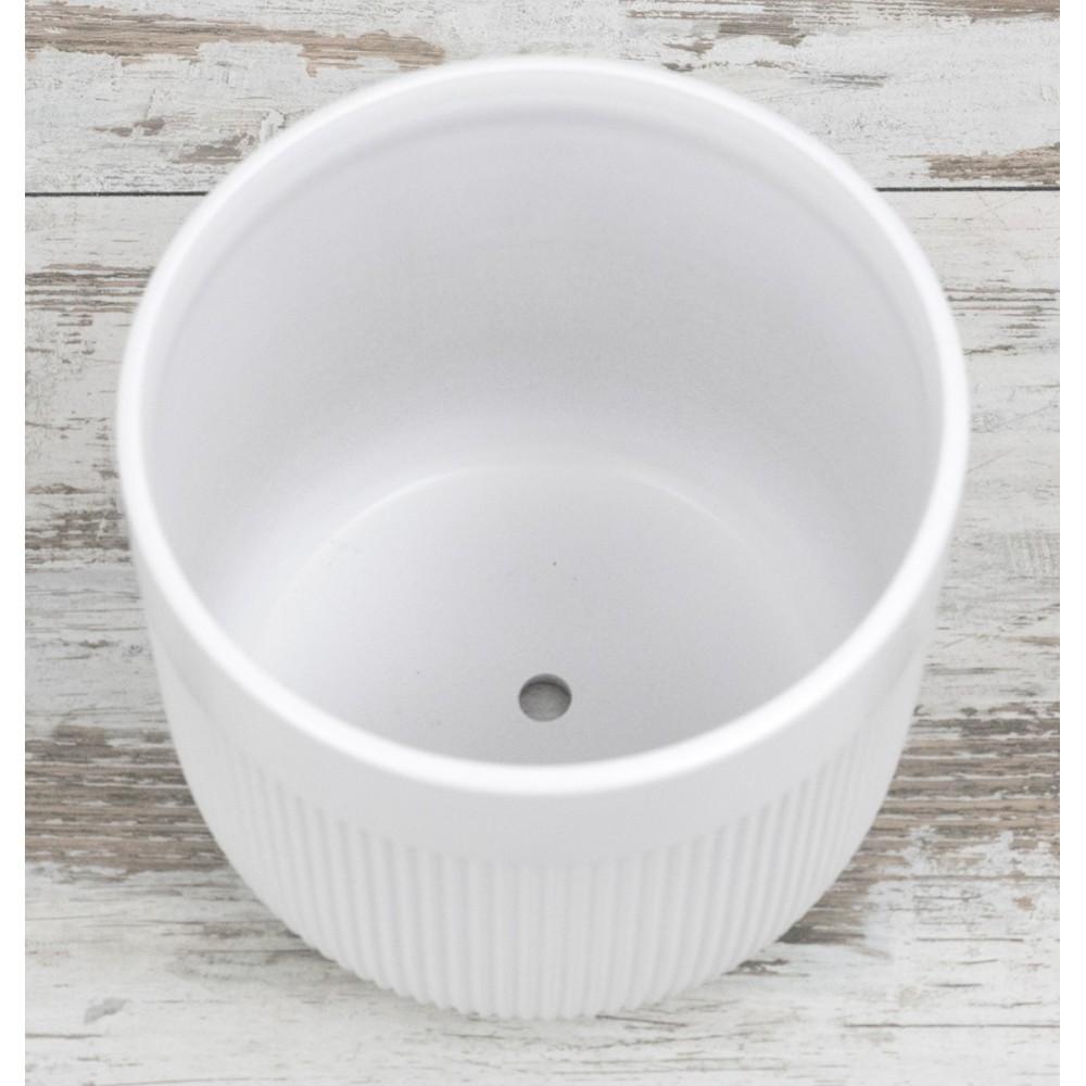 Elegancka biała doniczka ceramiczna prążkowana to idealne połączenie prostoty i nowoczesnego designu. Wykonana z wysokiej jakości ceramiki, zachwyca subtelnym, pionowym żłobieniem, które nadaje jej wyjątkowego charakteru. Doniczka posiada otwór odpływowy, który zapewnia odpowiednią cyrkulację wody i chroni korzenie roślin przed przelaniem.