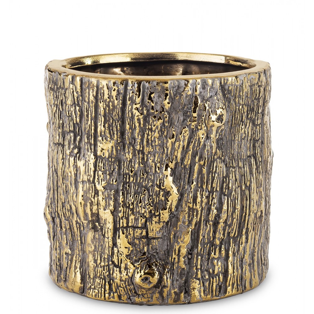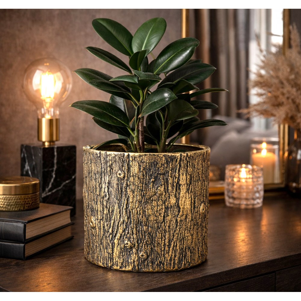 Wyjątkowa osłonka na kwiaty, która przyciąga wzrok swoją oryginalną strukturą inspirowaną naturalną korą oraz eleganckim, złotym wykończeniem. To idealne połączenie surowości stylu loft z nutą luksusu glamour.