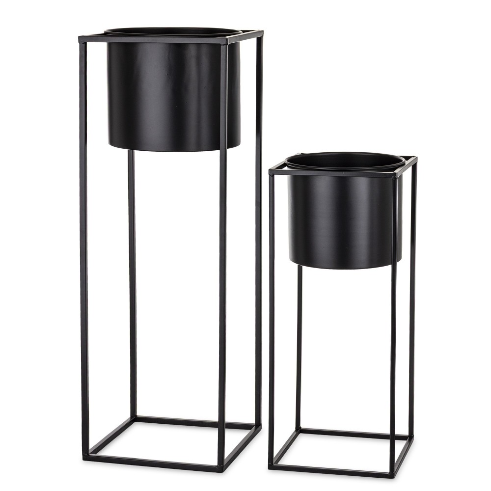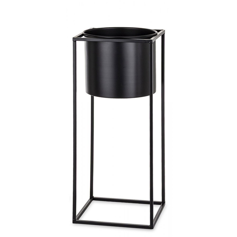 Stylowa osłonka na kwiaty osadzona na metalowym stojaku to idealne połączenie minimalizmu i nowoczesnego designu. Prosta, geometryczna konstrukcja w czarnym kolorze świetnie wpisuje się w aranżacje loftowe, industrialne oraz nowoczesne.