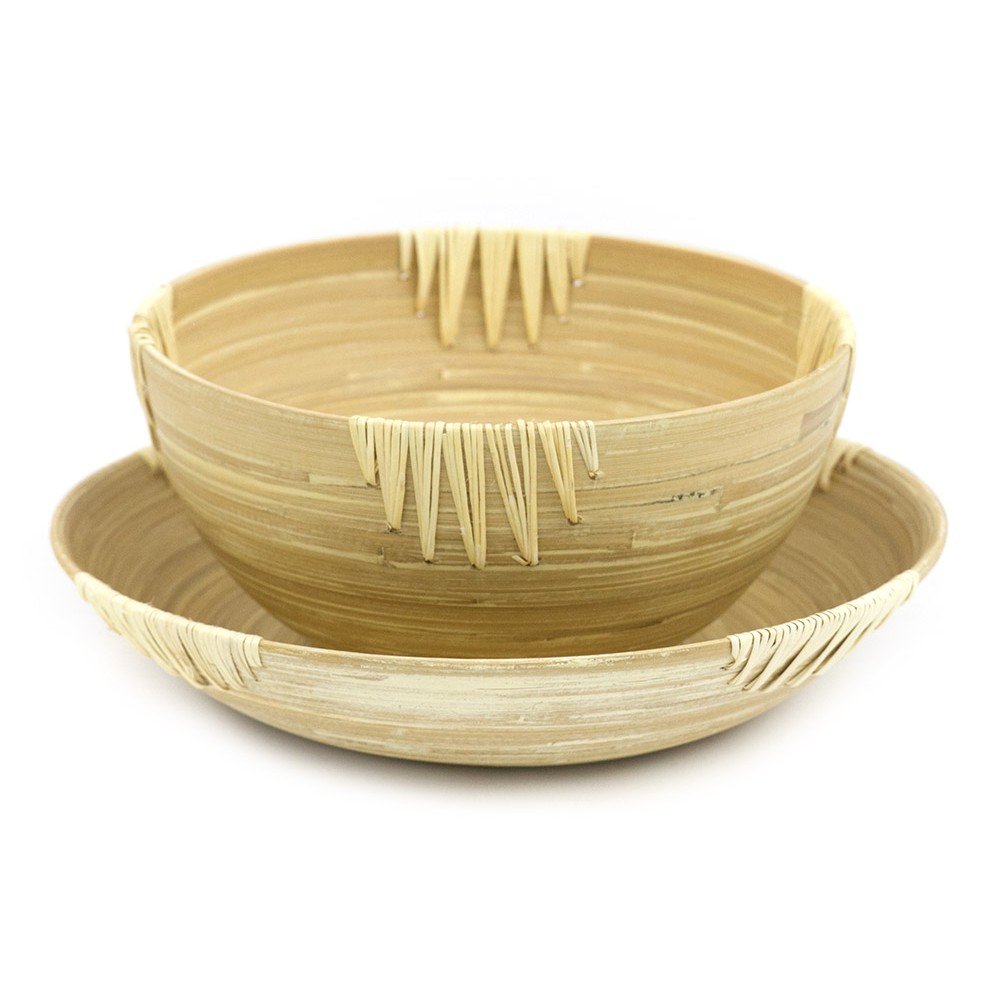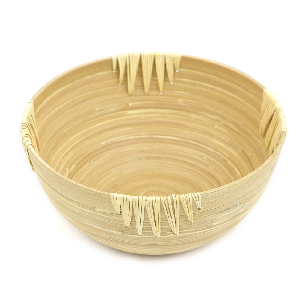Nieprzeciętna misa wykonana z bambusa i rattanu w kolorze beżowym. Idealny dla miłośników naturalnych dekoracji. Miskę można również zastosować jako paterę do wyeksponowania warzyw czy owoców, jak i również zastosujemy ją jako podstawkę do świec czy niezależnej dekoracji. Znajdzie wiele zastosowań, dlatego przyda się w każdym domu. Posiada gładką powierzchnie co ułatwia jej mycie lub czyszczenie.