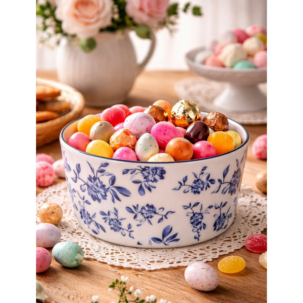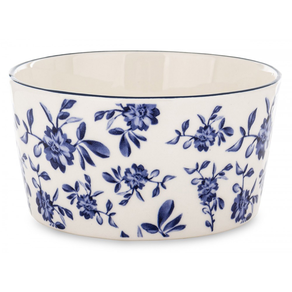 Stylowa miska ceramiczna ozdobiona delikatnym, niebieskim motywem kwiatowym to wyjątkowy dodatek do każdej kuchni i jadalni. Klasyczna kolorystyka w odcieniach bieli i granatu sprawia, że naczynie doskonale komponuje się zarówno z nowoczesną, jak i tradycyjną zastawą stołową.