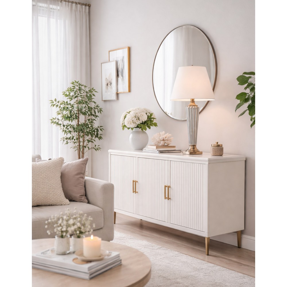 Stylowa lampa stołowa, która doskonale podkreśli charakter eleganckiego salonu, sypialni lub gabinetu. Smukła, dekoracyjna podstawa z pionowymi żłobieniami w połączeniu z klasycznym jasnym kloszem tworzy ponadczasową kompozycję pasującą zarówno do wnętrz nowoczesnych, jak i klasycznych.