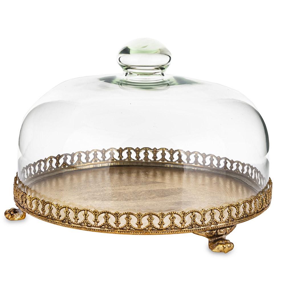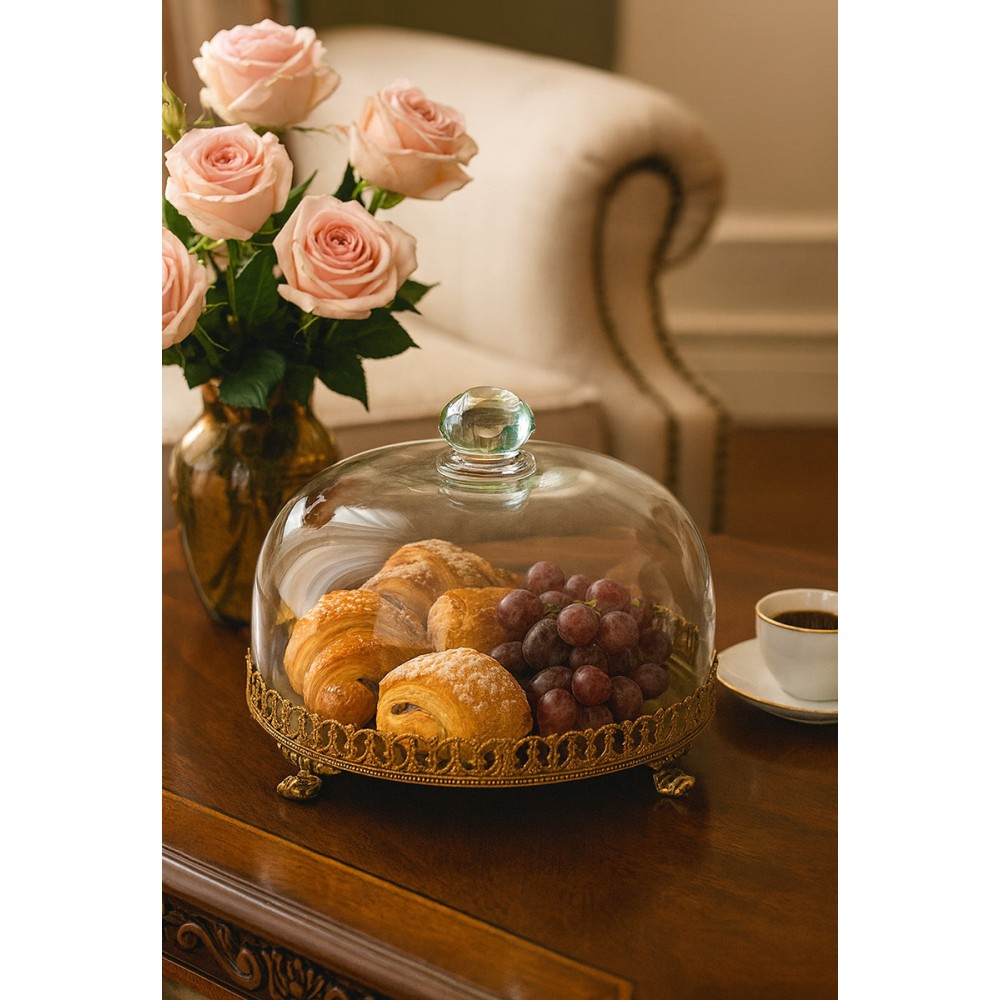 Praktyczny szklany klosz chroni umieszczone wewnątrz wypieki, owoce lub dekoracje, jednocześnie pięknie je eksponując. Idealnie sprawdzi się w salonie, jadalni lub kuchni jako efektowny dodatek w stylu klasycznym, glamour lub vintage.