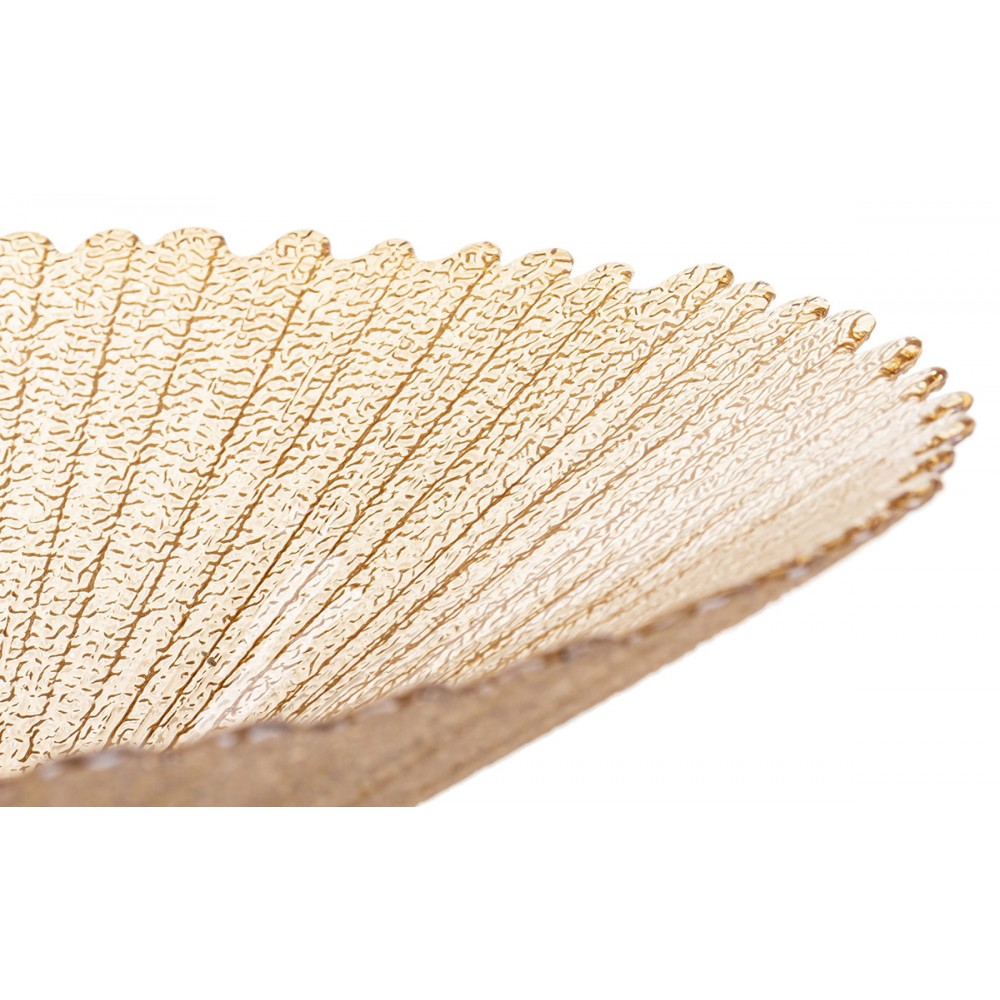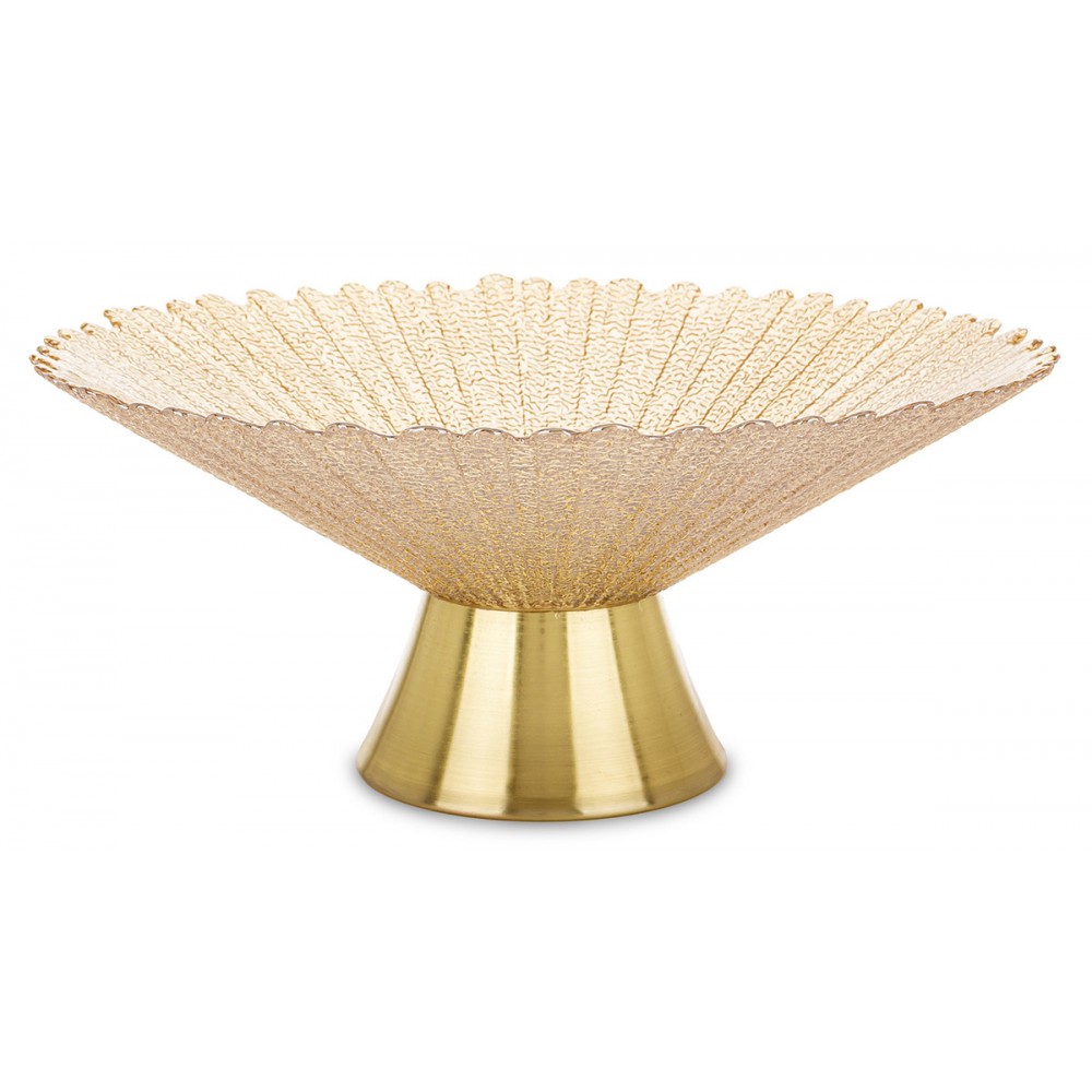 Elegancka patera o wymiarach 14x32cm, łącząca nowoczesny design z ponadczasową klasyką. Jej ponadczasowy design sprawi, że będzie pasowała do każdej nowoczesnej zastawy a dzięki swojemu zdobieniu będzie bardzo widocznym dodatkiem. Szklany talerz w kolorze beżowym osadzony jest na stabilnej metalowej nóżce w złotym odcieniu, co nadaje całości luksusowego charakteru. Idealna do serwowania słodyczy, owoców czy przekąsek podczas spotkań rodzinnych i przyjęć. Stanowi również wyjątkowy element dekoracyjny, który doda szyku każdemu wnętrzu. Znajdzie wiele zastosowań, dlatego przyda się w każdym domu. Posiada gładką powierzchnie co ułatwia jej mycie lub czyszczenie.