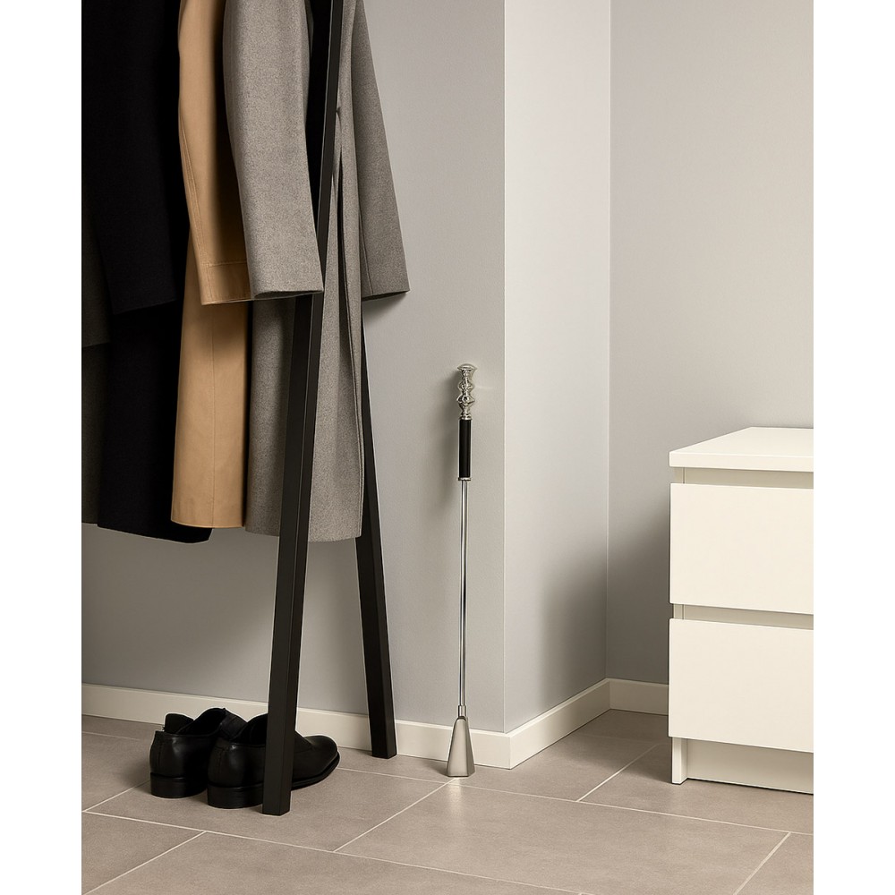 Łyżka do butów 62 cm to połączenie funkcjonalności z eleganckim wyglądem — sprawdzi się zarówno w codziennym użytkowaniu, jak i jako designerski element wyposażenia wnętrza.