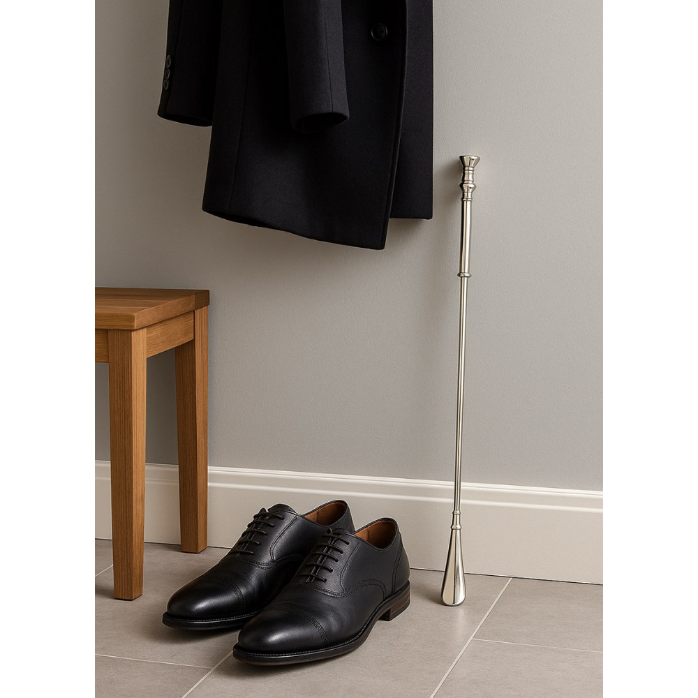 Łyżka do butów 62 cm to połączenie funkcjonalności z eleganckim wyglądem — sprawdzi się zarówno w codziennym użytkowaniu, jak i jako designerski element wyposażenia wnętrza.