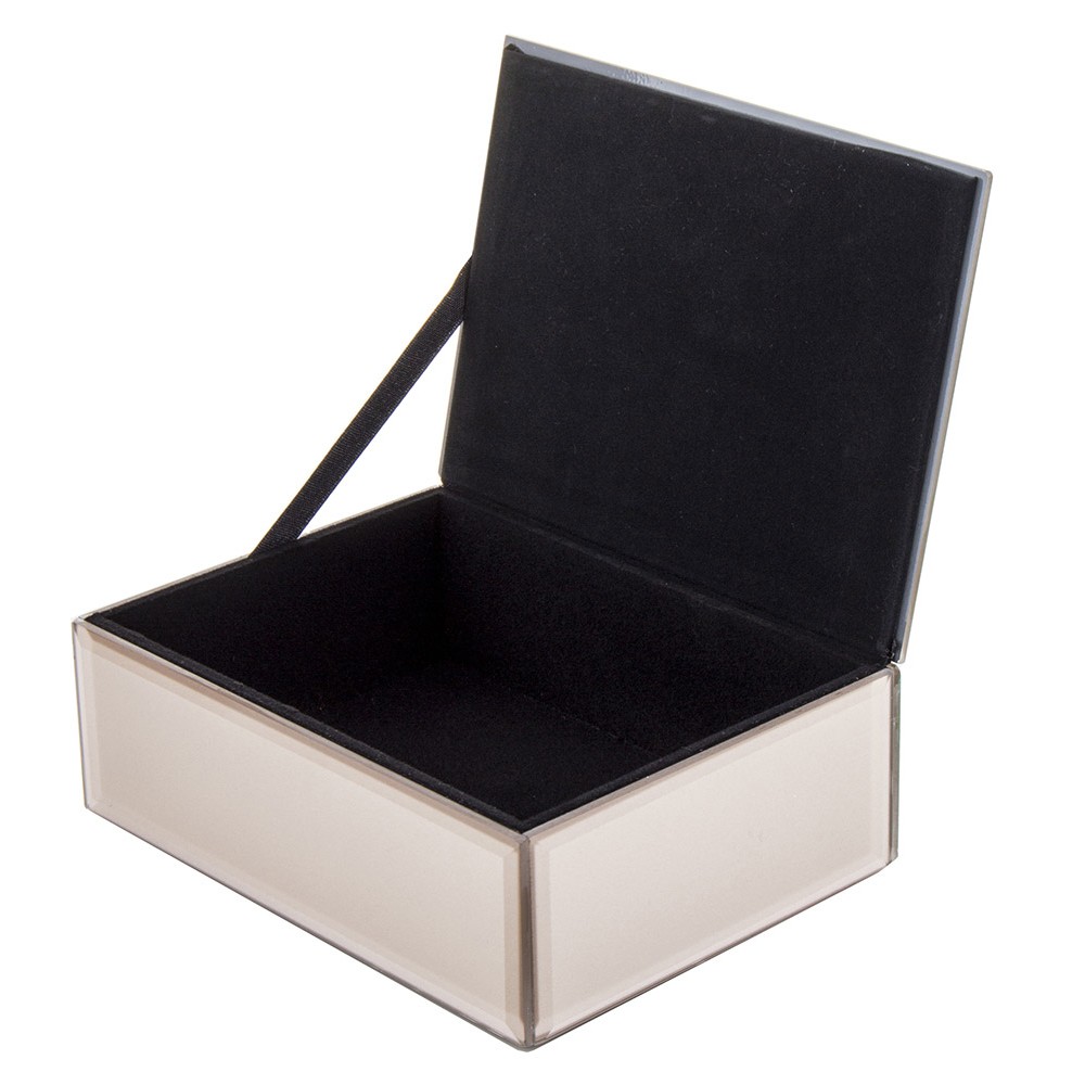 Elegancka szkatułka na biżuterię szklana w kolorze brązowym (szampańskim) to wyjątkowy dodatek, który łączy funkcjonalność z luksusowym stylem. Wykonana w taki sposób aby zachwycić najbardziej wymagających. Wewnątrz jedna przegroda na pierścionki i na pozostałe elementy biżuterii, a wnętrze wyściełane jest czarnym zamszem. Wykonana z wysokiej jakości szkła o subtelnym, perłowym połysku, pięknie odbija światło i nadaje wnętrzu klasy oraz szyku.
