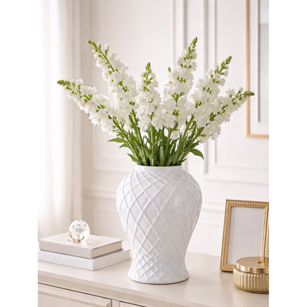 Wyjątkowy, dekoracyjny pojemnik ceramiczny, który zachwyca swoją formą i subtelnym wzornictwem. Dzięki uniwersalnemu charakterowi może pełnić funkcję zarówno stylowego wazonu, jak i eleganckiego pojemnika dekoracyjnego do przechowywania.
