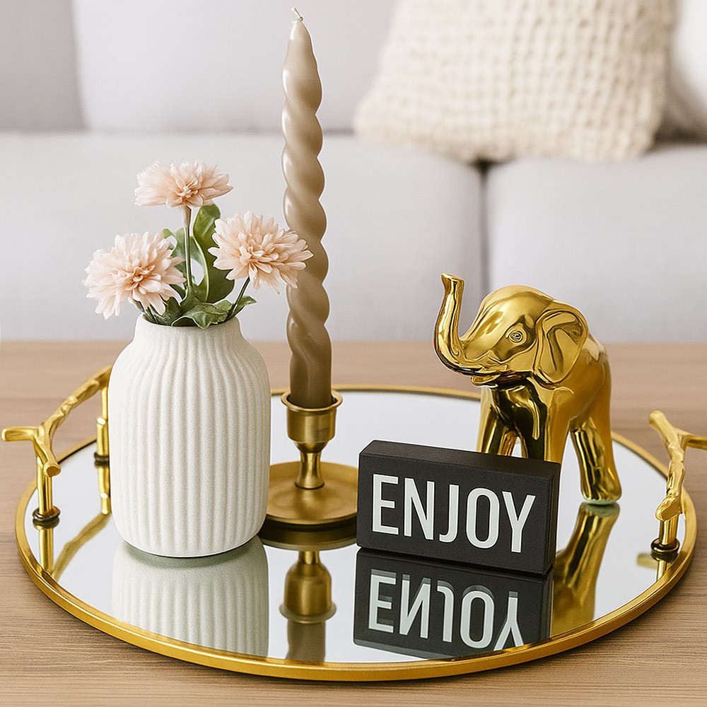 Dodaj swojemu wnętrzu nutę nostalgii i wyjątkowego charakteru dzięki dekoracyjnej tacy w nowoczesnym stylu. Wykonana z wysokiej jakości materiałów, z solidnymi uchwytami ułatwiającymi przenoszenie. Idealnie sprawdzi się jako element dekoracyjny lub funkcjonalny dodatek do serwowania. Można ją również zastosować jako niezależną dekorację stawiając na niej ciekawą kompozycję. Będzie wyjątkową ozdobą w salonie czy jadalni, a jej unikatowy design sprawi, że nie pozostanie niezauważona.