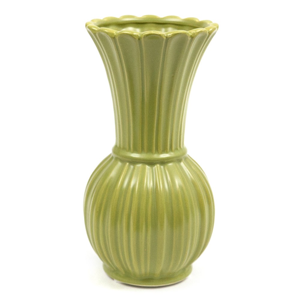 Stylowy wazon wykonany z wysokiej jakości kamionki to ponadczasowa dekoracja, która doskonale odnajdzie się w każdym wnętrzu. Jego subtelna forma o delikatnie żłobionej powierzchni oraz eleganckie, zielone wykończenie sprawiają, że pasuje zarówno do aranżacji nowoczesnych, jak i klasycznych, skandynawskich czy romantycznych.