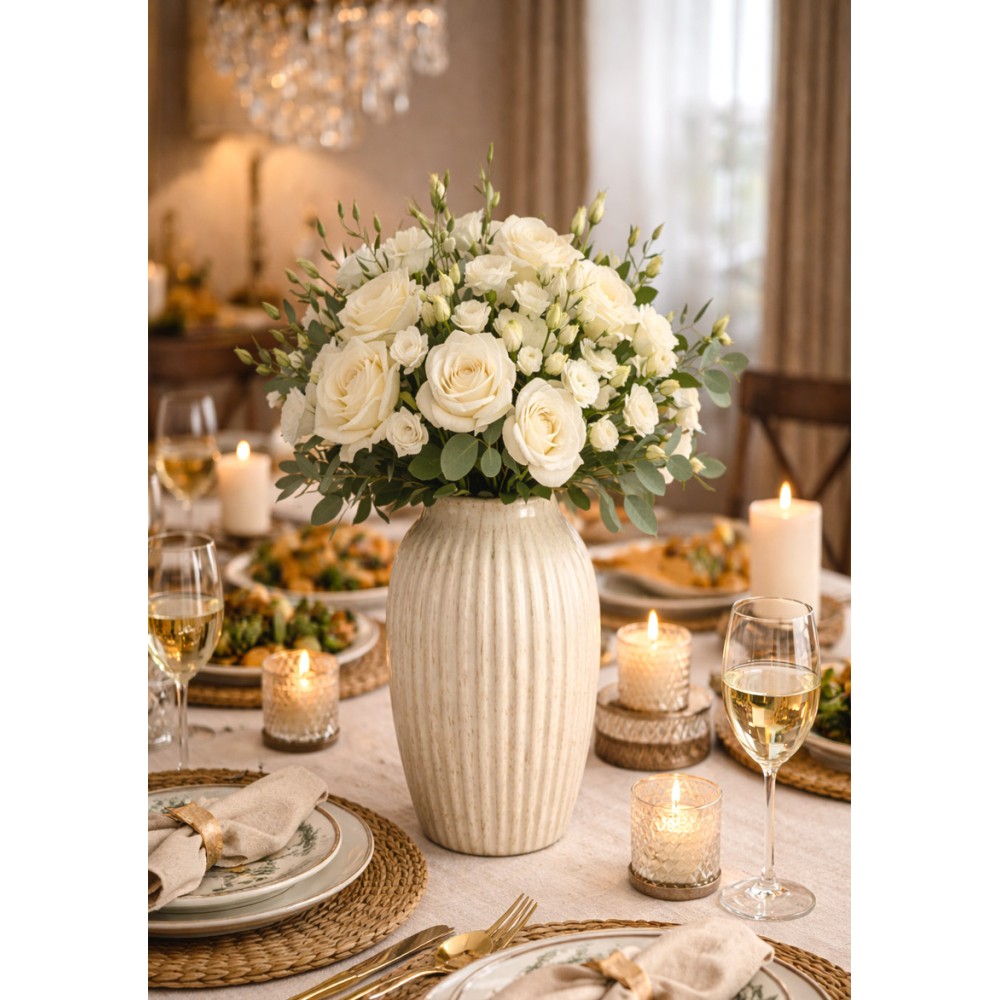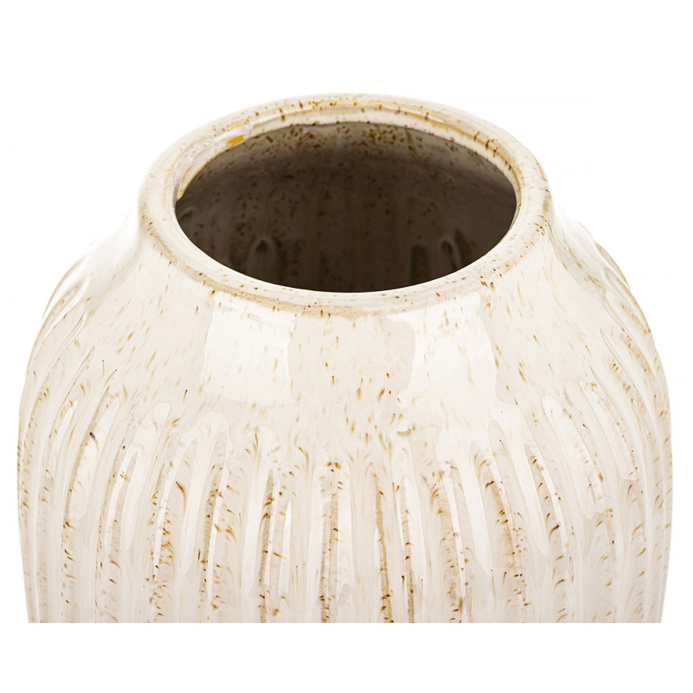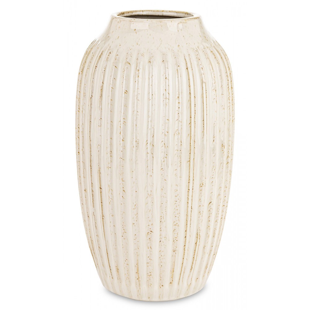 Stylowy wazon dekoracyjny, który łączy prostą, ponadczasową formę z efektowną, pionową strukturą. Delikatne żłobienia oraz subtelne przetarcia w naturalnych odcieniach kremu i beżu nadają mu wyjątkowego charakteru i sprawiają, że pięknie prezentuje się w każdym wnętrzu.
