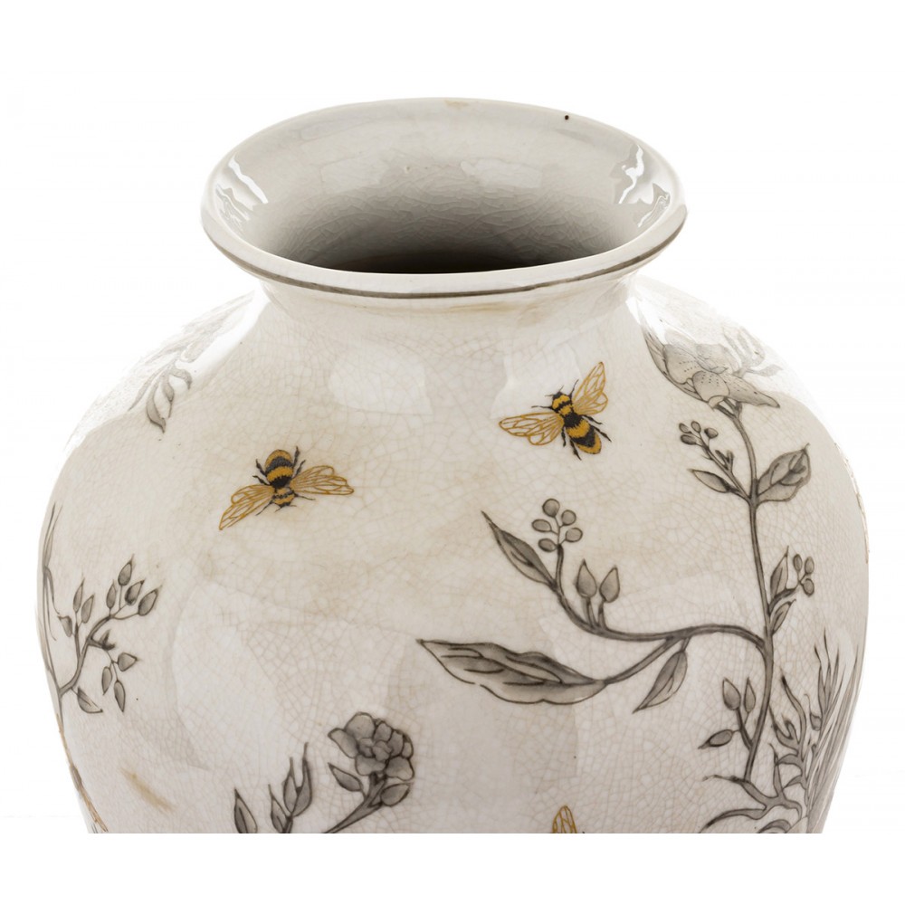 Jasna, kremowa kolorystyka oraz efekt delikatnej spękanej struktury (crackle) podkreślają styl vintage, dzięki czemu wazon doskonale wpisuje się w aranżacje prowansalskie, klasyczne oraz rustykalne.